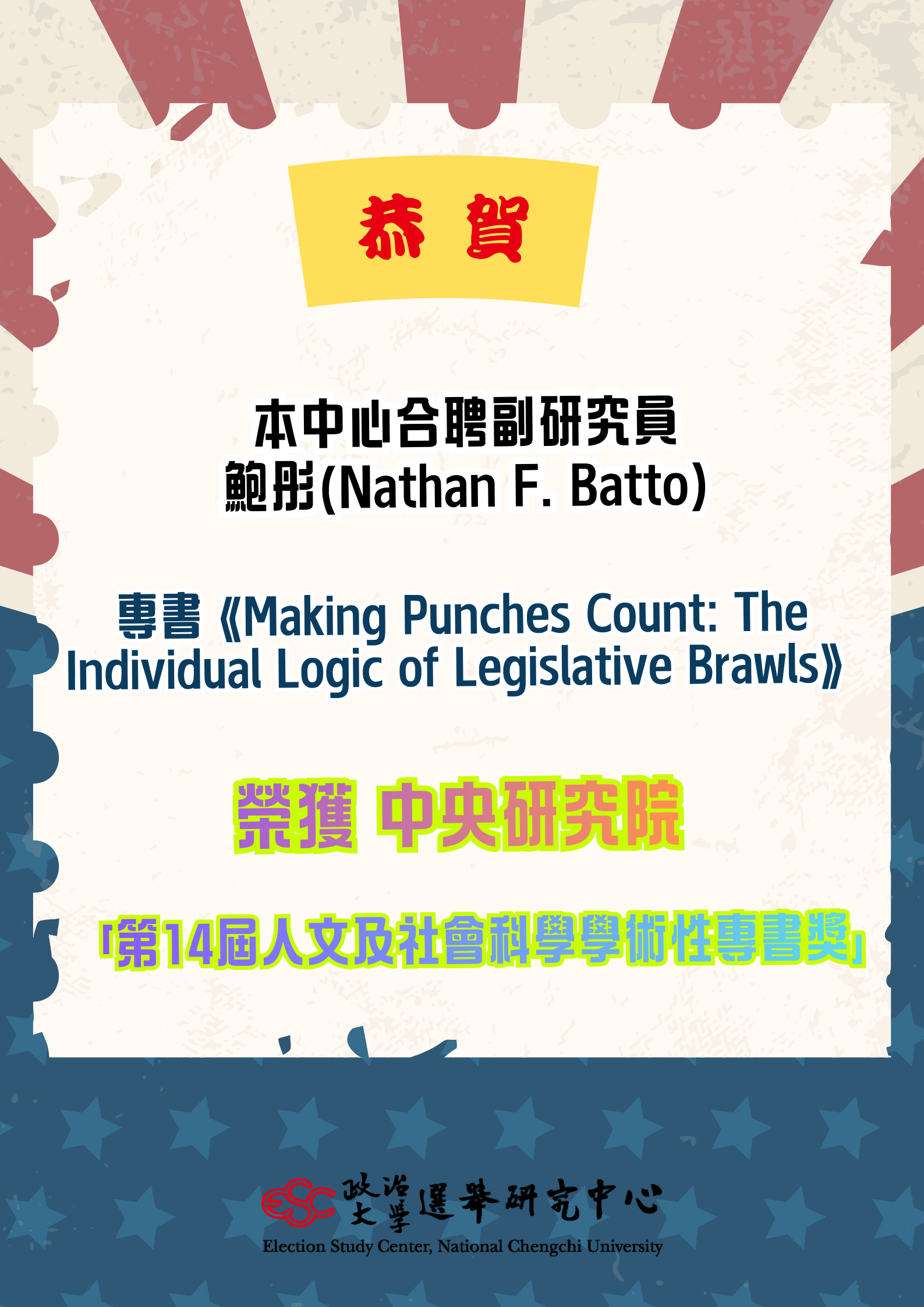 賀!本中心合聘副研究員鮑彤(Nathan F. Batto)榮獲中央研究院「第14屆人文及社會科學學術性專書獎」